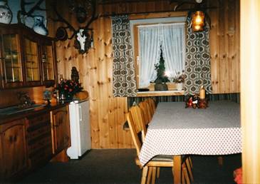 In unserem gemütlichen und rustikal in Holz gehaltenem Aufenthaltsraum befindet sich auch ein Kühlschrank zur selbstständigen Gästebenutzung und ein Fernsehgerät mit Kabel-TV.